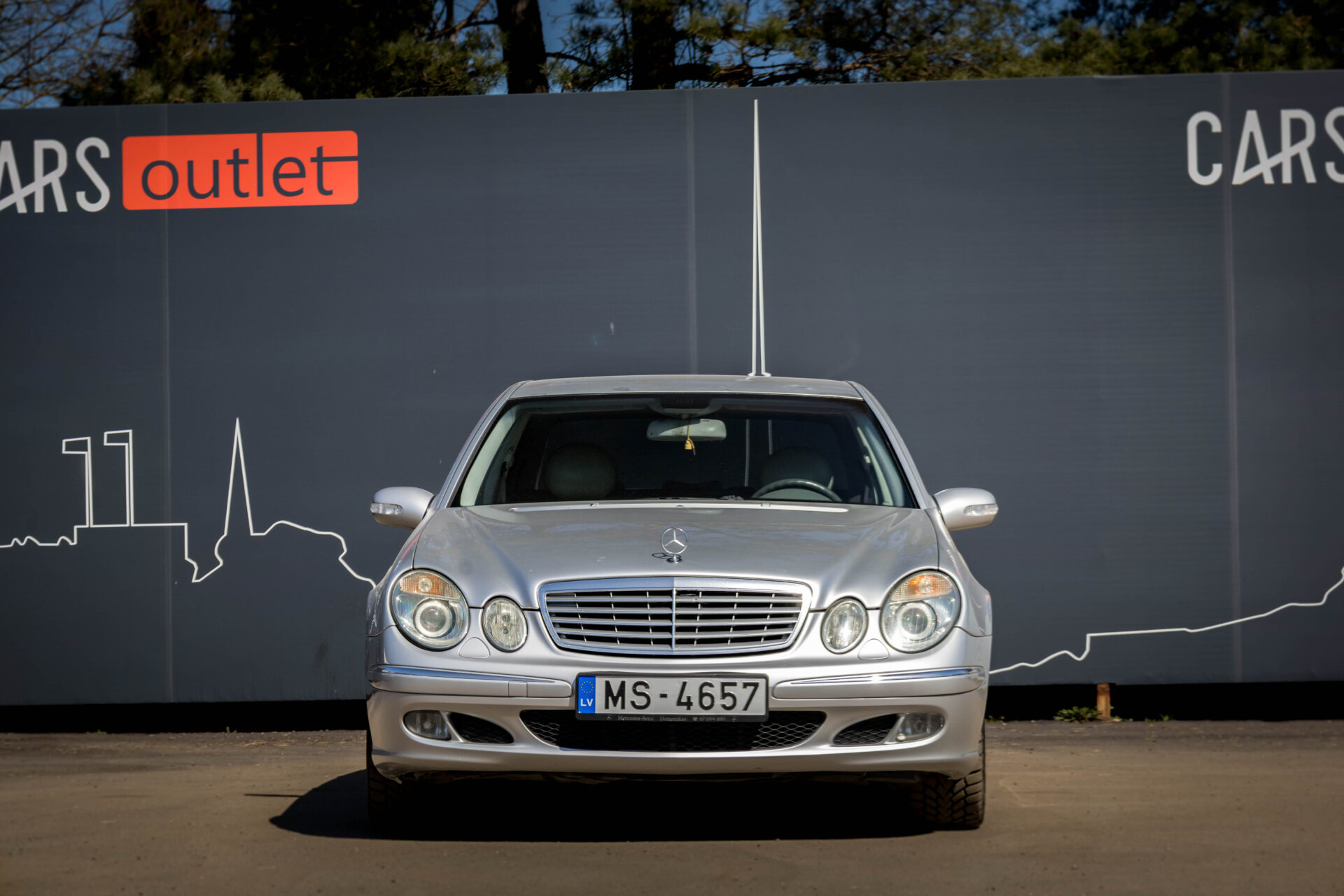 Mercedes Benz E270 ar 2.7 litru dīzeļdzinēju un automātisko transmisiju. 130 kW. -Tumšs ādas salons. -Puselektriski regulējamas priekšējās sēdvietas. -Elektriski vadāmi sānu spoguļi. -Elektriski vadāmi logi. -Automātiskās dienas gaismas. -Aizmugurējie pārkingsensori. -Kruīzkontrole. -Mercedes multimedia. -Kondicionieris. -Xenon. -Klimatkontrole. -Multifunkcionāla stūre. -Vieglmetāla diski ar labām riepām. -U.C. ekstras.